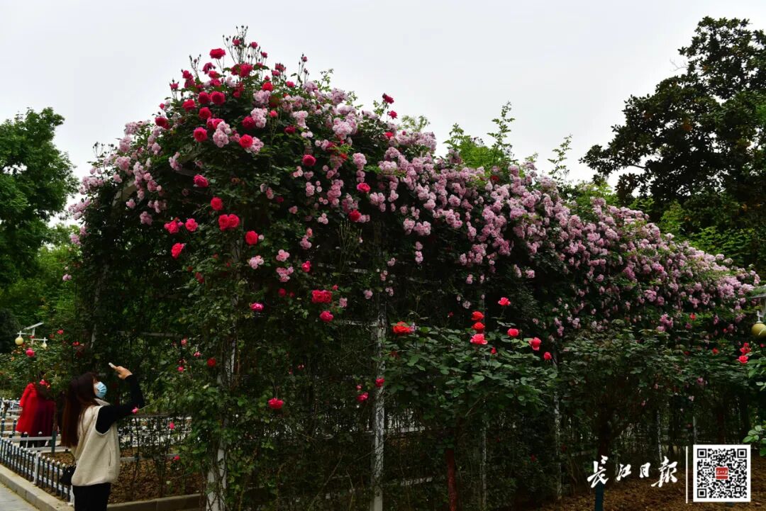 眼下,不仅街头的月季开到“爆街”,武汉解放公园、和平公园、杨春湖公园、中山公园、月湖公园、琴台绿化广场等近百座公园的月季也进入盛花期,引来众多市民赏花拍照。