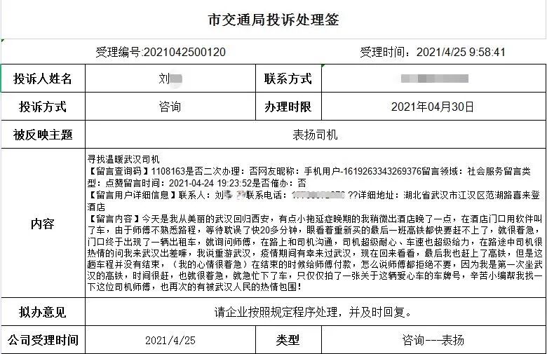 赶上高铁的刘女士深深被褚师傅感动,为了表达对褚师傅的感谢并支付车费,她通过武汉城市留言板表达了自己的这份特殊“诉求”——寻找这位温暖的武汉司机。