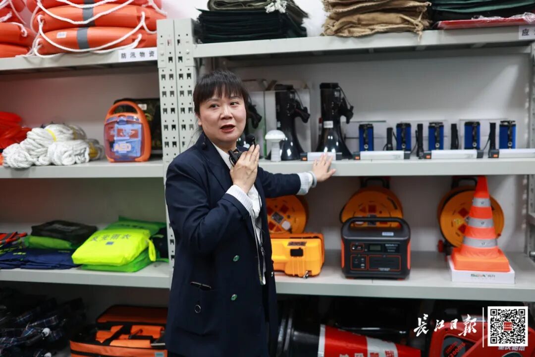 武昌区百瑞景社区书记王涯玲介绍应急服务站的物资储备室。记者施政 摄
