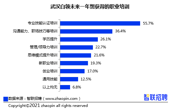 智联招聘近日发布调查报告:2021年春季有跳槽行动的武汉白领占比69.3%。成功收获职位比例提升至6.8%。过去一年超三成武汉白领获得升职加薪,不满薪酬仍是跳槽主因。