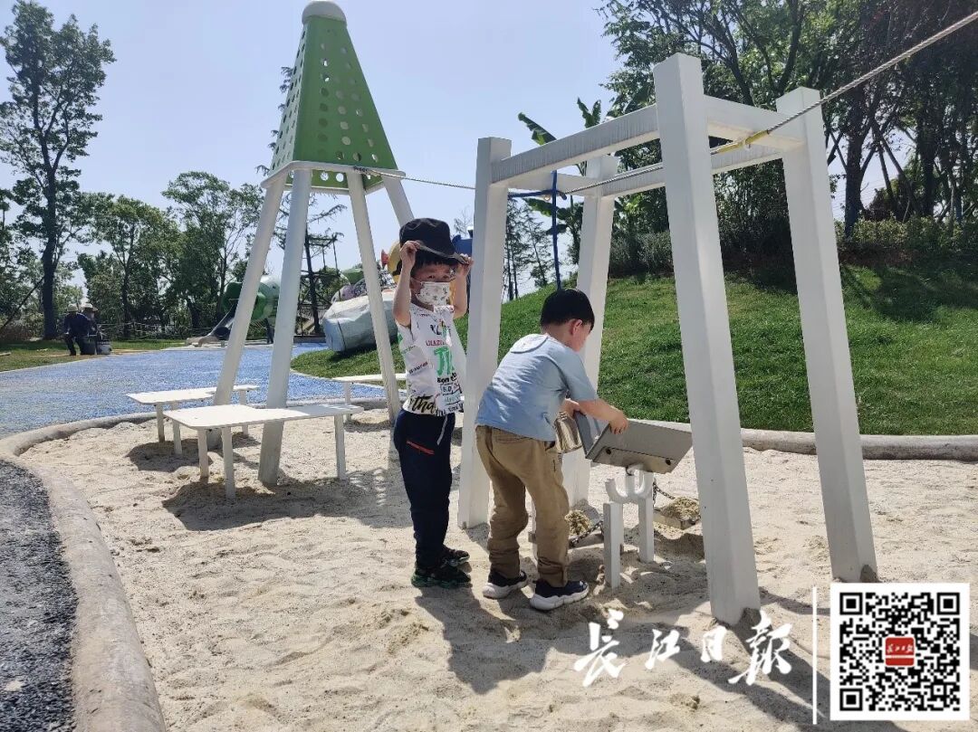 小伙伴共享“沙趣”。见习记者李昕宇 摄