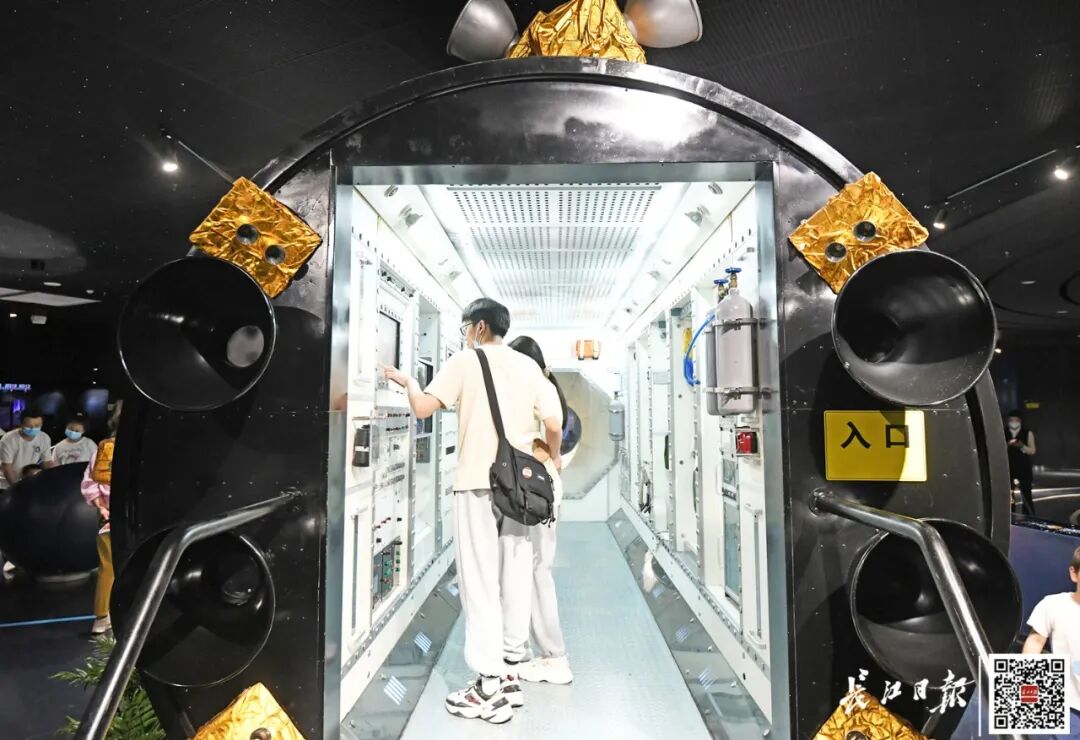 武汉科技馆举办的航天科普特展上,展出了长征五号运载火箭和中国“天宫一号”宇宙空间站模型,“五一”期间,让众多游客大饱眼福。