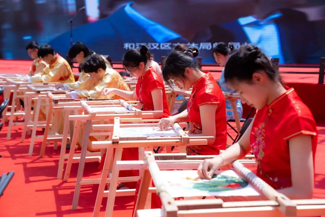 5月1日下午,2021·汉绣嘉年华在江汉路启幕,其中的汉绣新品发布尤为引人注目,来自武汉纺织大学的模特们展示了40余套汉绣服饰,既有鲜艳浓烈的戏装,也有优雅时尚的旗袍、手包、饰品等。
