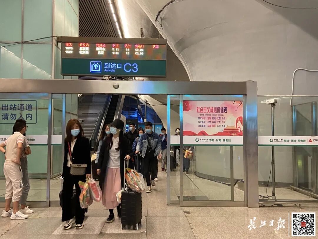 从北京西来的旅客在武汉站下车。 记者王谦摄