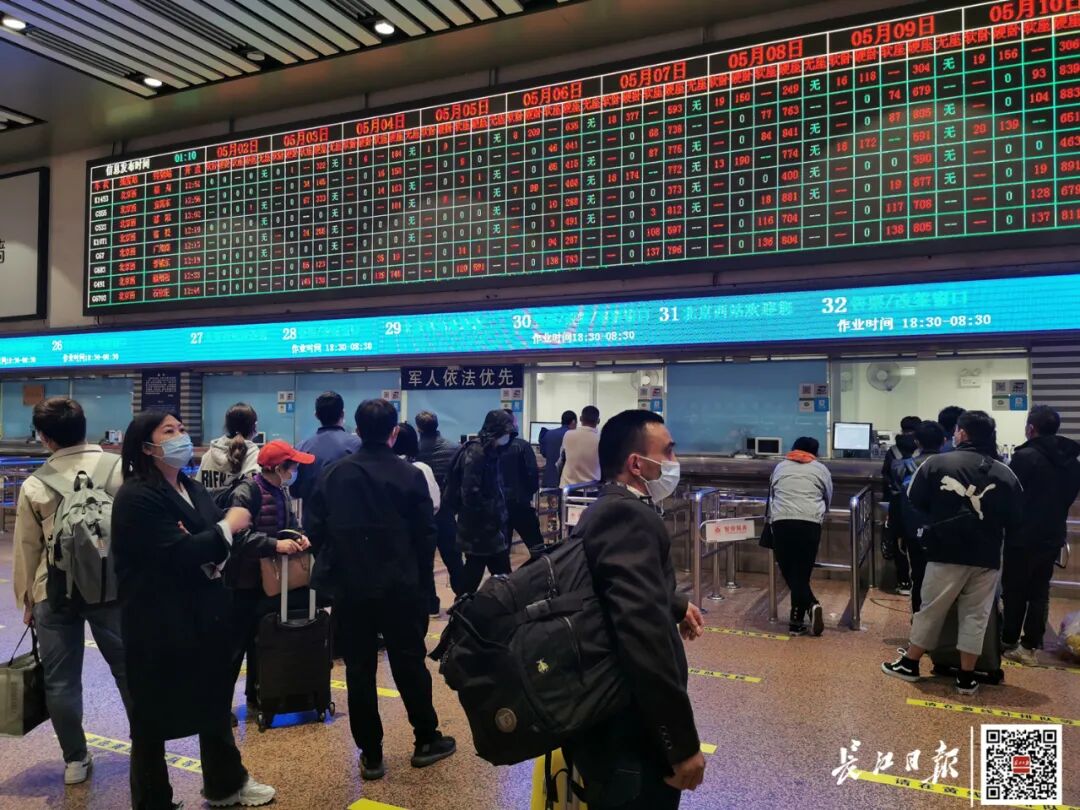 5月2日凌晨1:00,长江日报记者在北京西站看到,仍然不断有旅客进站。部分抵达列车,比正常晚点了6小时左右。