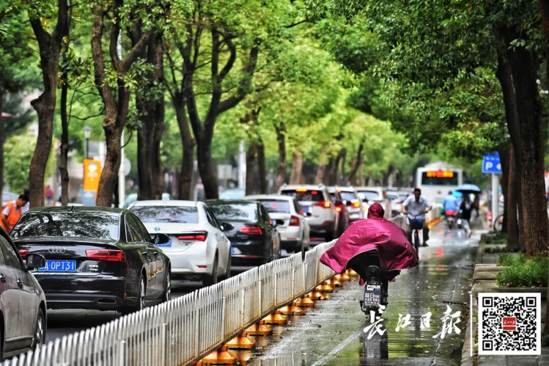 武昌石牌岭西路,上班族在雨中出行(资料图)。记者苗剑 摄