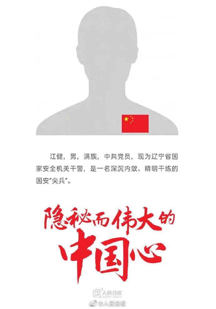 第25届“中国青年五四奖章”正式颁布,其中一张“隐藏”头像图片引起网友注意,上面只有模糊的轮廓和胸前的五星红旗。照片的主人叫江健,现为辽宁省国家安全机关干警,是一名深沉内敛、精明干练的国安“尖兵”。网友感慨:“隐藏的头像和鲜艳的国旗令人动容。”