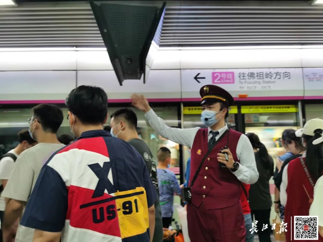 节日期间, 为保障市民游客乘坐地铁需求,“四大火车站”地铁站等交通枢纽站制定出详细客流组织方案,提前备足回型栏杆、预赋值单程票等物资,武汉火车站地铁站启用备用安检机以提高通行效率。当进站客流增大时,通过增开无包“快检通道”和人工售票窗口、灵活调整进出站闸机方向、增设临时岗位等措施,保障现场客流组织平稳、有序。