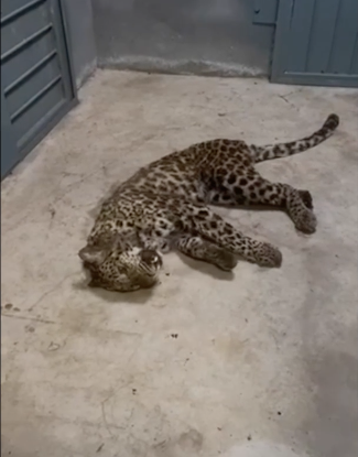 8日18时许,被麻醉捕获的小豹子正在苏醒中。