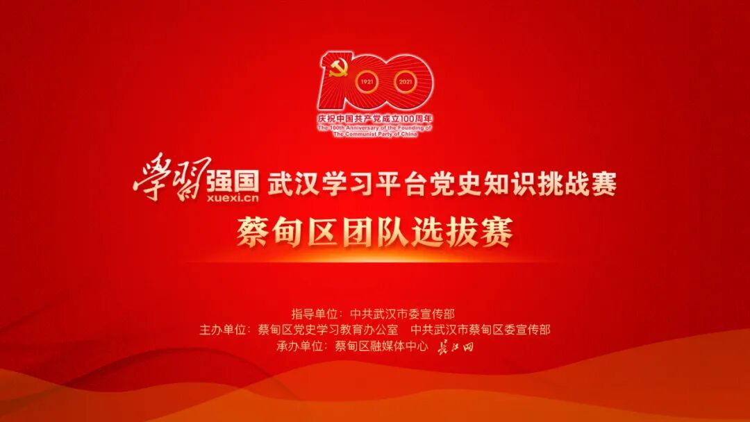 “学习强国”武汉学习平台党史知识挑战赛蔡甸区团队选拔赛,将于5月14日下午在武汉市蔡甸区中法新城永久会址会议中心举办。这是全市首场团队选拔赛。