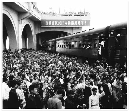 武汉长江大桥落成通车盛况。图片来源:央视新闻客户端