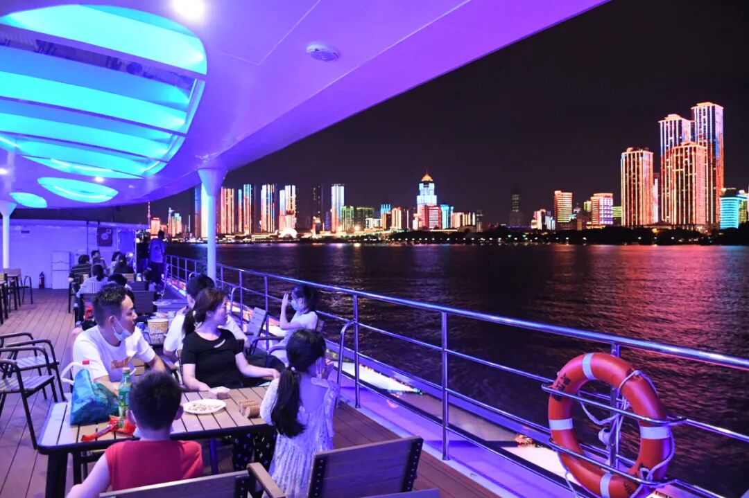 游客乘坐“君旅号”欣赏长江夜色。资料图