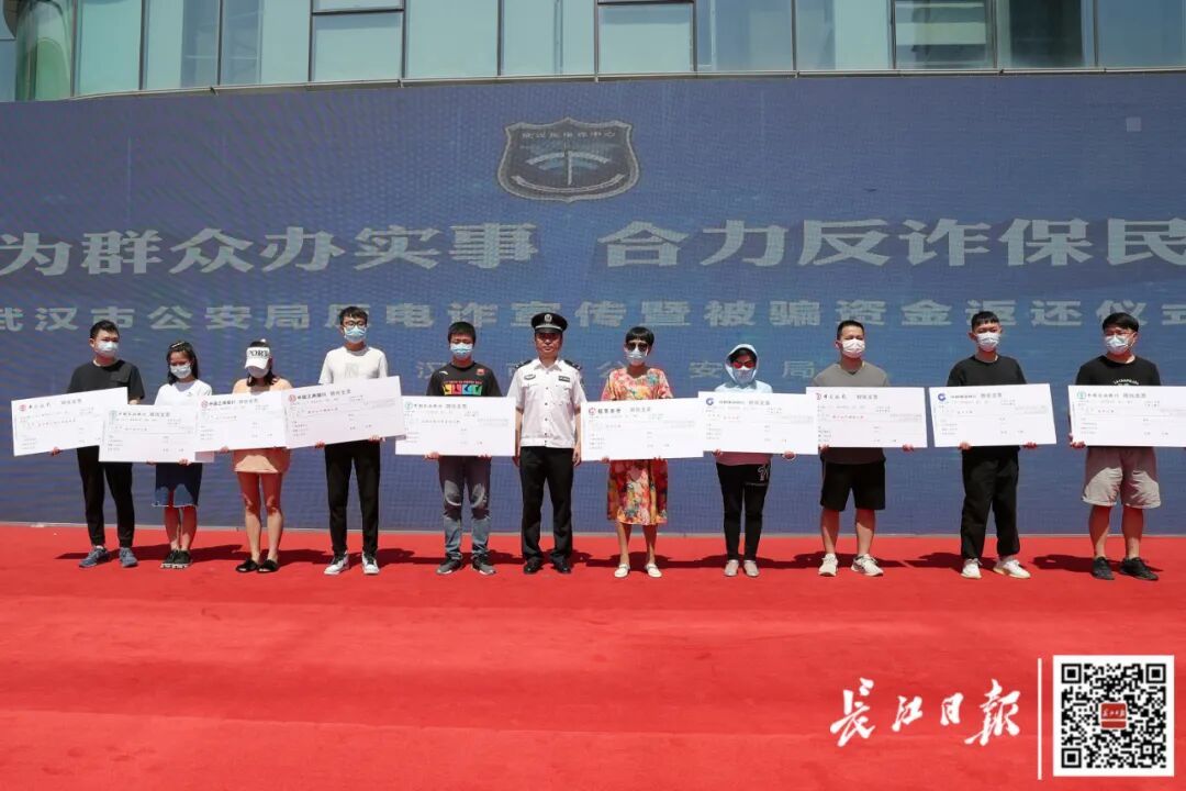 6日,在光谷保利广场,有20名受骗群众代表欣喜地领到返还给他们的200余万被骗款项。此次,武汉警方在全市共集中返还被骗款1043万,所涉及的案件均为“兼职刷单”“贷款、代办信用卡”“杀猪盘”“冒充领导”等常见诈骗类型。今年,武汉警方已上门劝阻12万多人免遭电信诈骗。