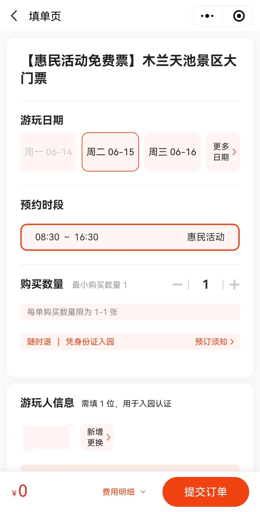 5.填写游玩信息,提交订单