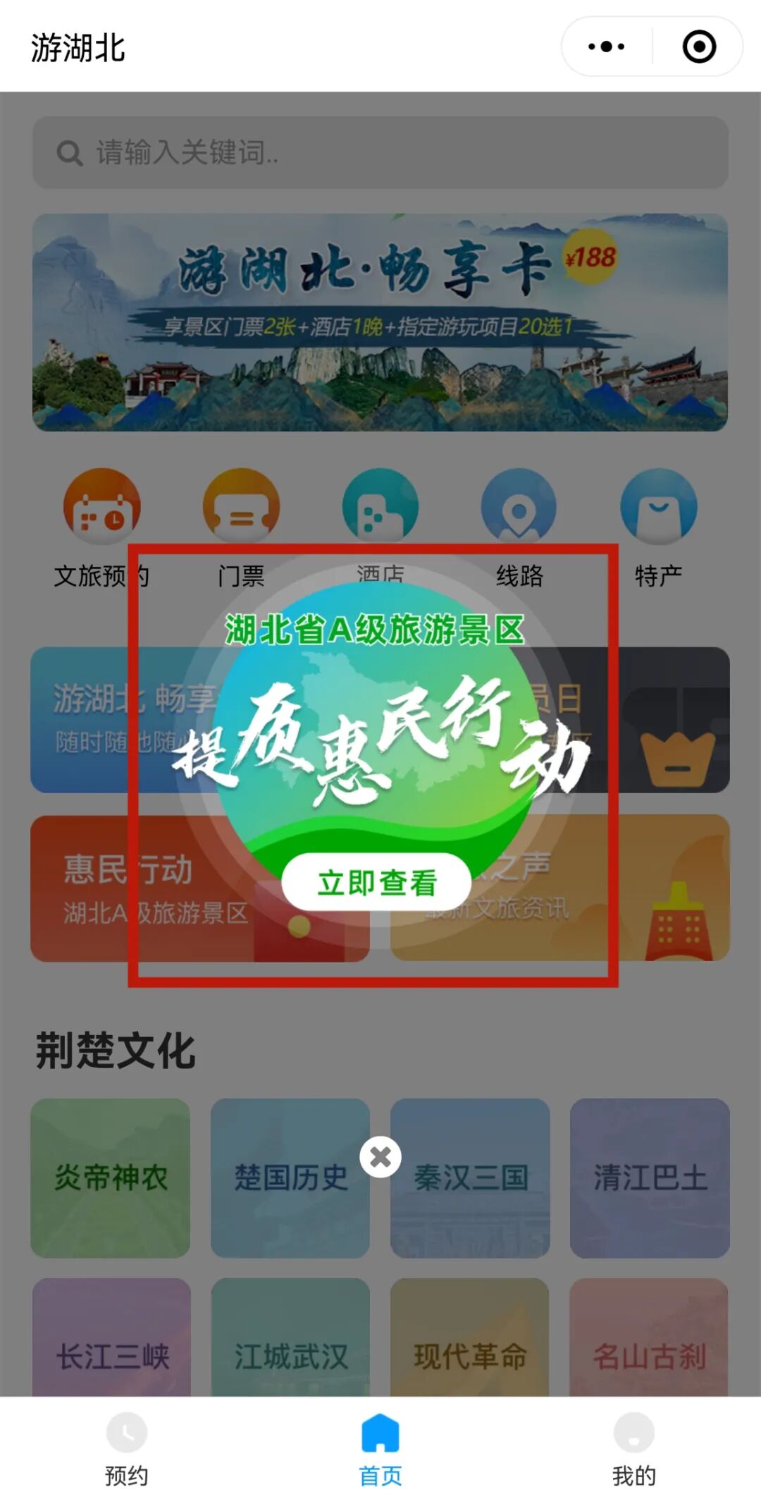 2.在对话框输入“游湖北”,点击进入小程序