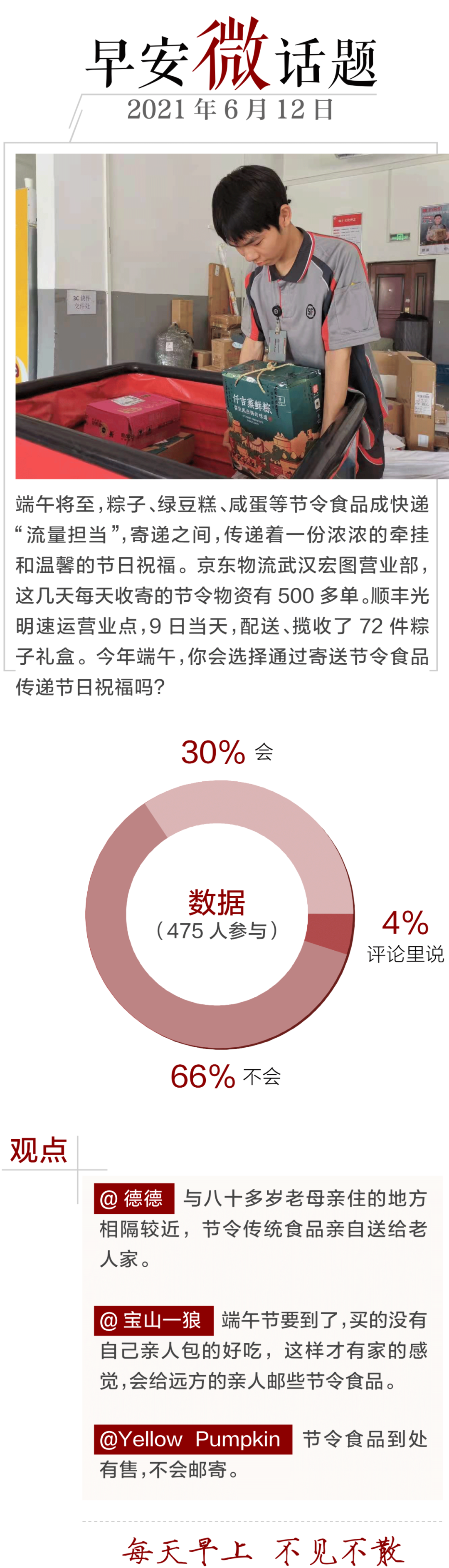 6月11日,武汉市交管局发布端午出行提示:今年端午节假期(6月12日至14日)全国高速公路通行不免费,预计外出旅游人数较“五一”小长假将明显减少,以省内回乡探亲游、周边民俗游和亲子游为主,市内景区、商圈客流量将恢复至2019年同期水平。详见>>>