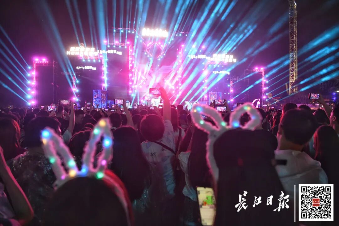 7月3日晚,武汉欢乐谷HOHA电音节启幕,不少市民冒雨欣赏演出。