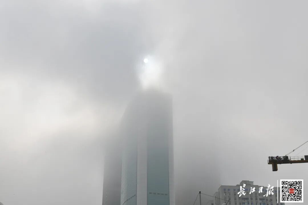6日清晨,汉口建设大道,太阳被一片雾气笼罩。记者詹松 摄