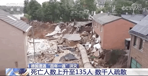 连日来,受暴雨影响,欧洲中部和西部的部分地区发生严重洪涝灾害,冲毁大量房屋和道路,造成通信中断,包括德国、比利时、荷兰等多国受灾。在受灾最严重的德国西部,截至17日,已有135人遇难。