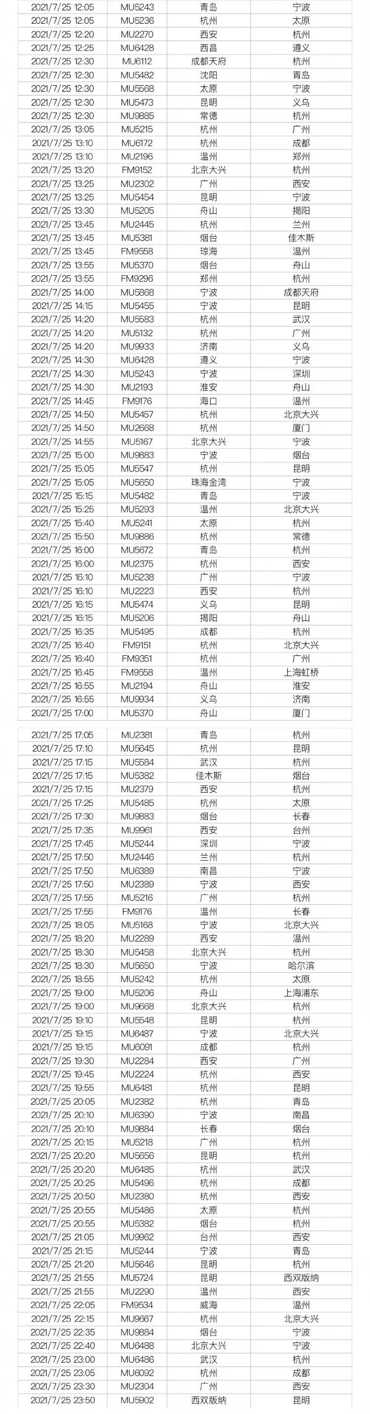 中国东方航空发布消息:取消7月24日至7月25日上海、宁波等地部分进出港航班。