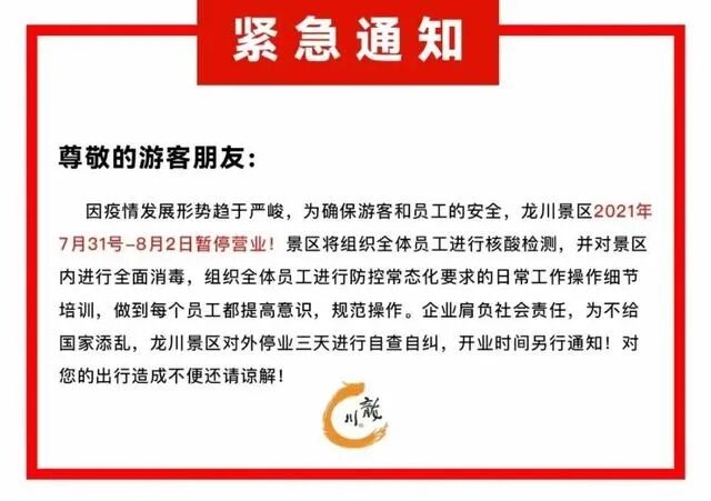 7月30日关闭所有景区景点