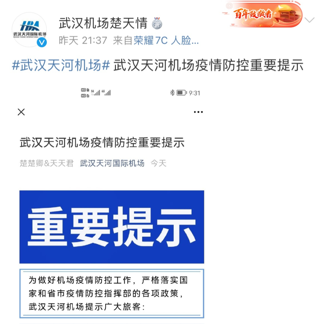 武汉天河机场发布最新提示
