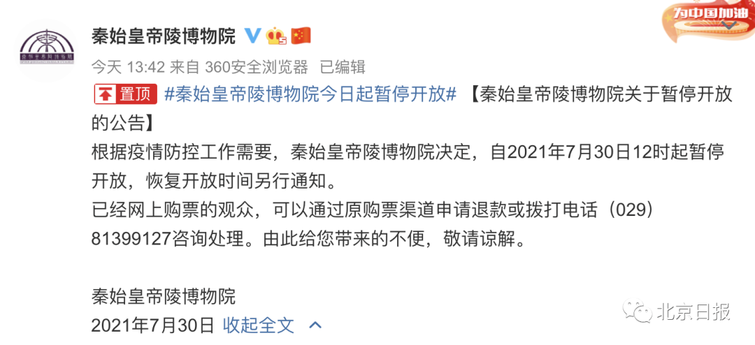 华清宫景区等景点发布公告称