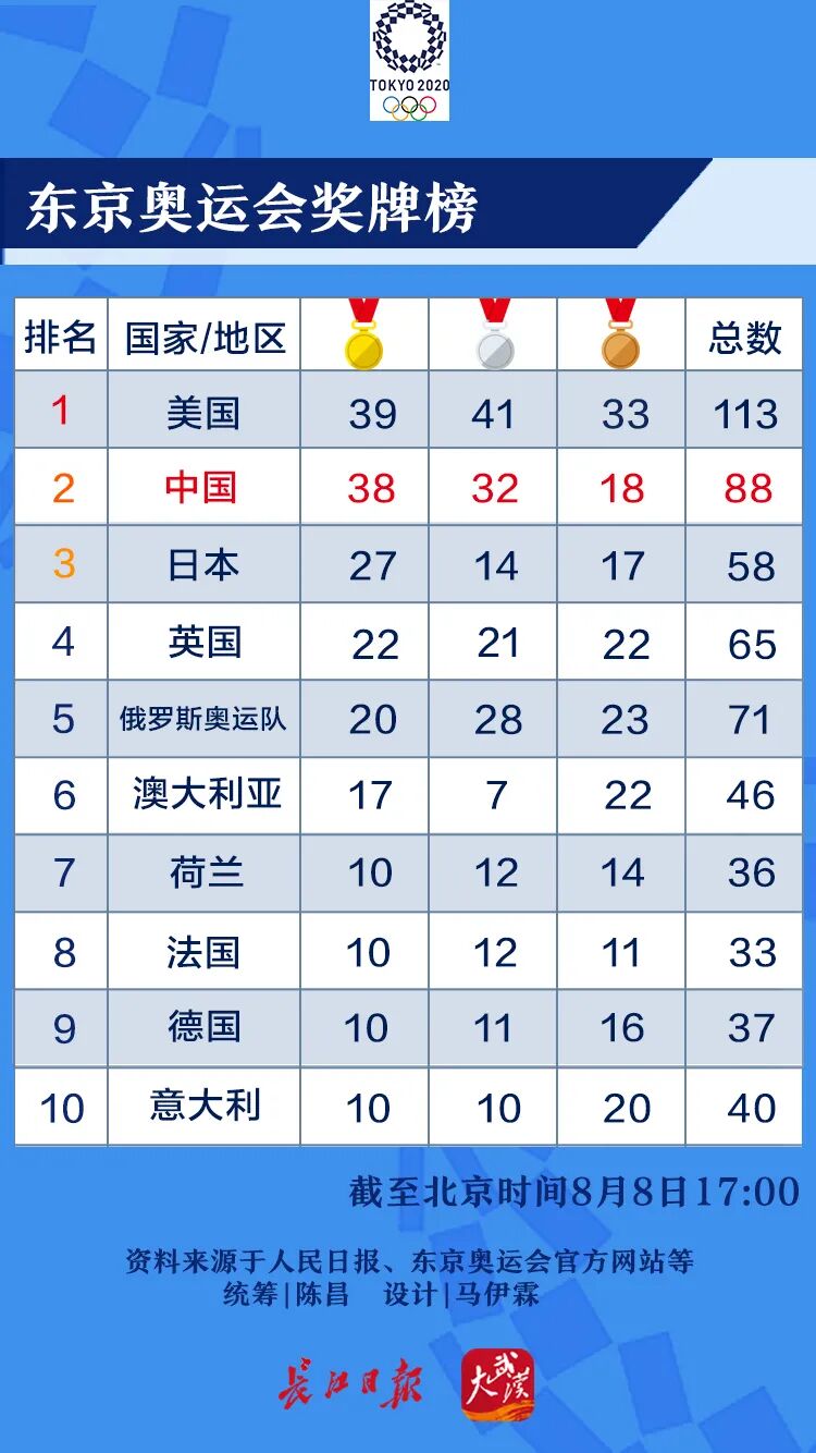 8日东京奥运会迎来收官日,中国代表团在拳击项目再添一银,以38金32银18铜位居奖牌榜第二位。