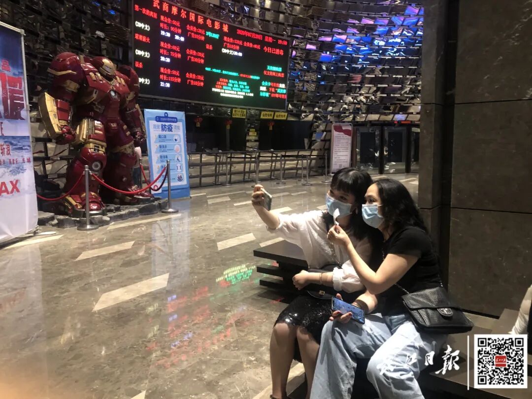 武商摩尔国际影城,市民Chris和朋友特意在电影院拍照,记录下这重要的一刻。记者陈玲 通讯员周伊琳 楼宇航 摄