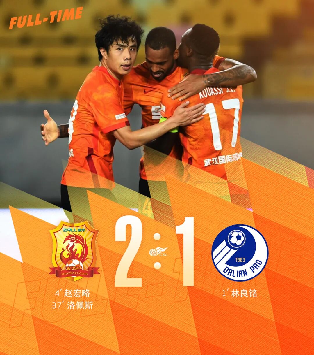 与大连人一战,武汉队在开场仅1分钟便失球的情况下,由赵宏略、洛佩斯完成了扳平与反超,最终2:1击败了这支未来保级战中的直接竞争对手,同时也赢得了本赛季开赛以来的首场胜利。