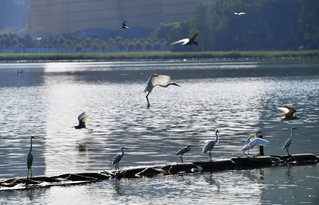 由于生态越来越好,武汉沙湖公园吸引数百只中白鹭栖息。这种鸟儿大量聚集,每日翩飞,已成沙湖一景,吸引众多市民驻足观看。