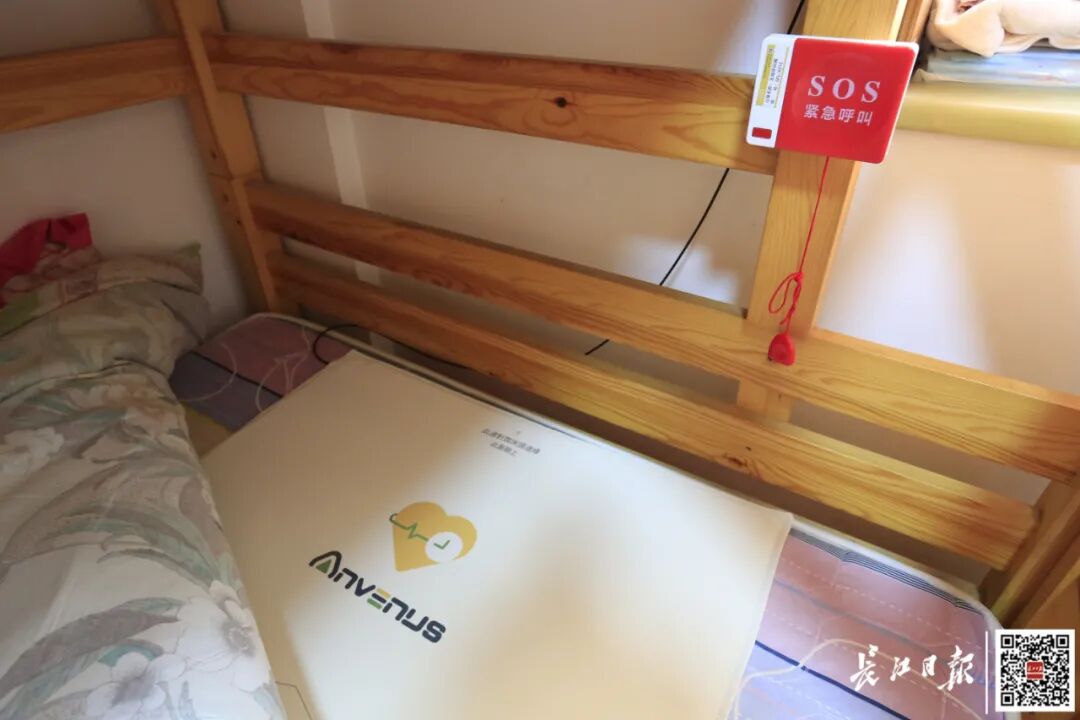 老人床上安装智能床垫和紧急呼叫器。记者柯志刚 摄