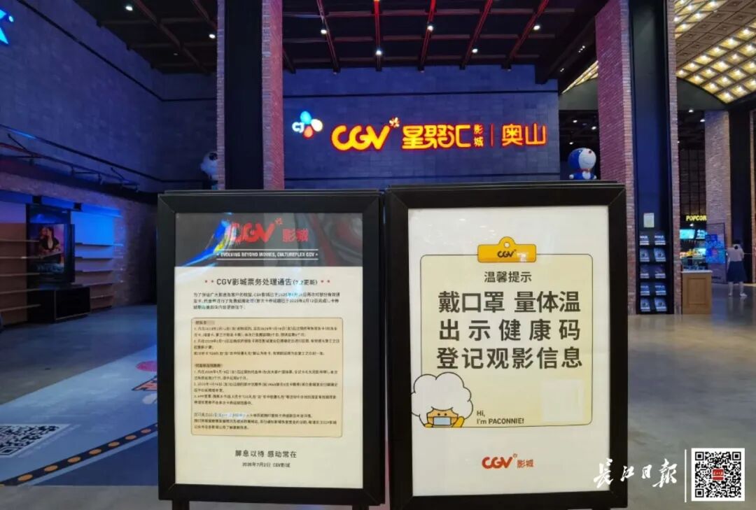 CGV影城武汉奥山店门前防疫指示牌。记者万旭明 摄