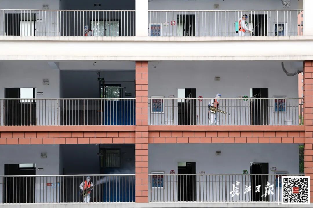 25日,武汉市光谷第十二小学邀请专业人员,对校园内学生活动场所及教室内外进行了彻底消毒清理。为迎接9月1日正式开学,该校提前14天通过网上小程序对学生及家长进行健康监测,每天进行追踪记录;并加强了校园防疫通道、红外线测温系统的设置,增加了校园防疫物资的储备。