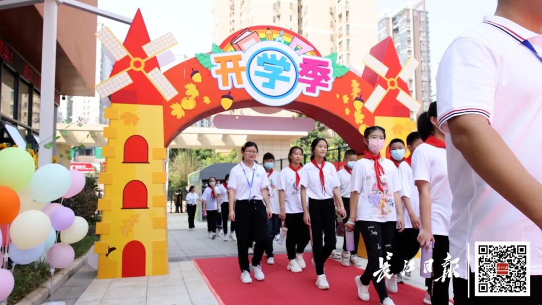 9月1日,东湖实验学校正式开学,同学们开心走进校园。通讯员肖开顺 摄