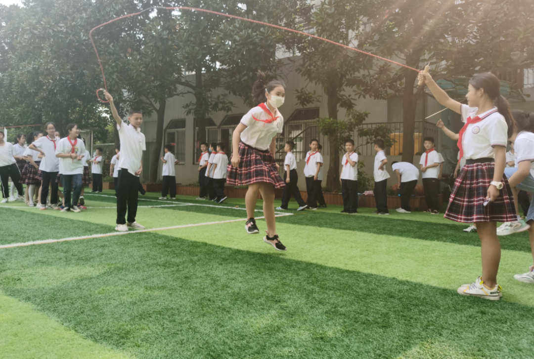 在硚口区红旗村小学,9月1日开始每天下午增加了一个30分钟的大课间,组织孩子们分年级有序开展体艺活动,跳长绳、学运球、接力跑、玩呼啦圈……