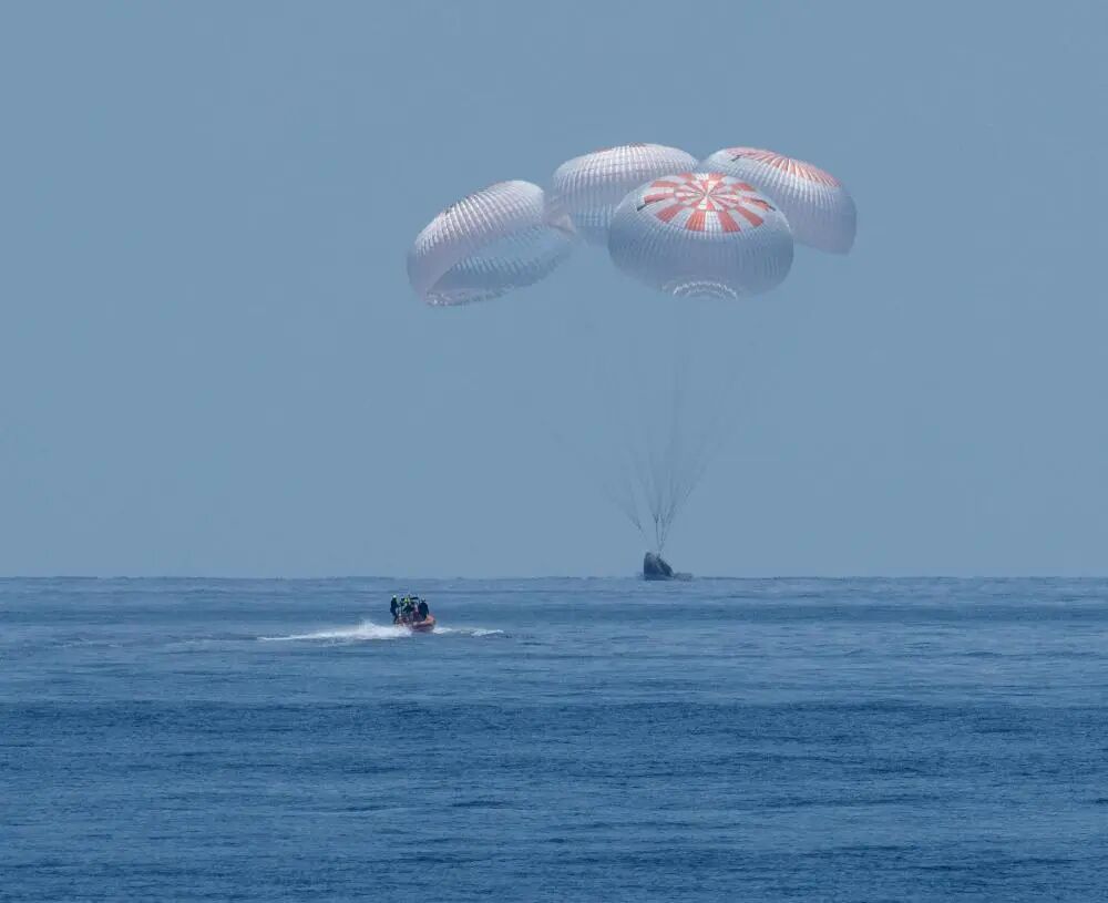 2020年8月2日,太空探索技术公司“龙”飞船溅落在美国东南部佛罗里达州附近的墨西哥湾。新华社发(美国航天局供图)