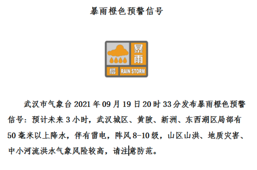 发布暴雨橙色预警信号