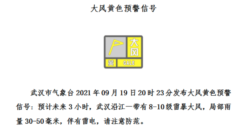 大风黄色预警信号