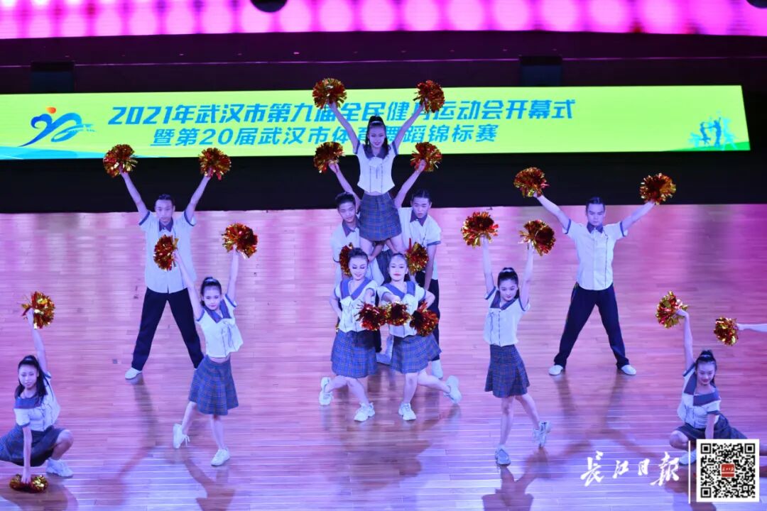25日晚,2021武汉市第九届全民健身运动会在武钢文化体育园体育馆正式开幕。来自全市26家体育舞蹈俱乐部、学校及社会培训机构的“舞林高手”们上演了一场“舞”动全城的盛装舞会,这标志着武汉“市民身边的奥运会”全面展开。