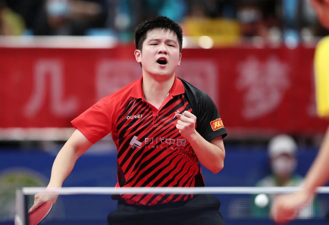 26日晚,全运会乒乓球男子单打决赛中,广东选手樊振东4:0战胜山东选手刘丁硕,夺得金牌。