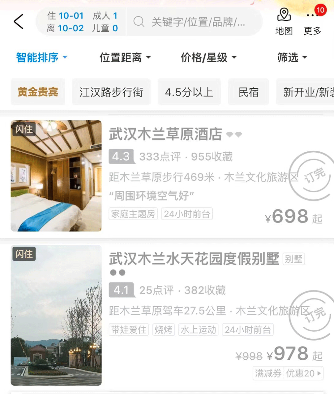 “这两天得赶紧下手,不然可能就订不到房了。”9月25日,刘女士计划和朋友在武汉周边景区玩两天,找一家民宿入住一晚,但是她浏览多家旅游平台发现,多家民宿、酒店的房间预订均显示为“售罄”状态。
