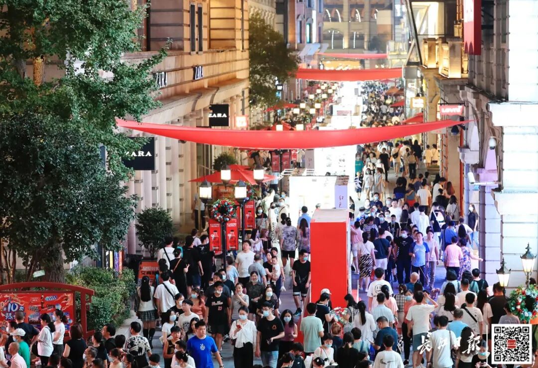 国庆期间,在楚河汉街逛街的市民游客依旧身着夏装。记者何晓刚 摄