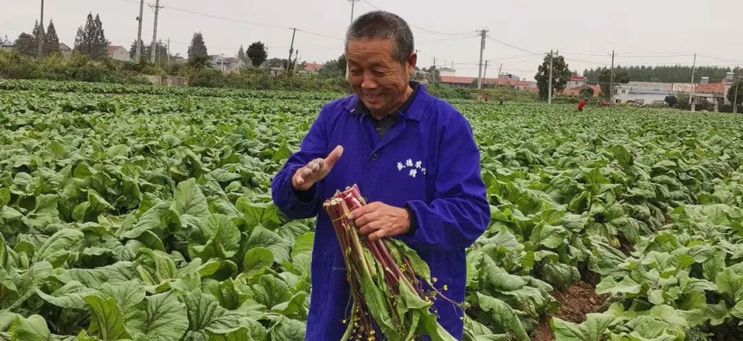 蔡甸张湾街红星村村民正在高兴地采收红菜薹。