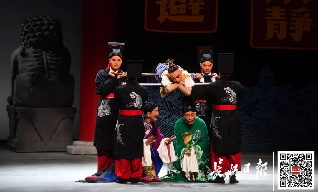 13日晚,由湖南省花鼓戏保护传承中心创作的湖南花鼓戏《蔡坤山耕田》在洪山礼堂上演。2小时诙谐幽默的演出让满场观众从头笑到尾,其中蕴含的“以民为本”理念更赢得观众起立鼓掌、叫好。