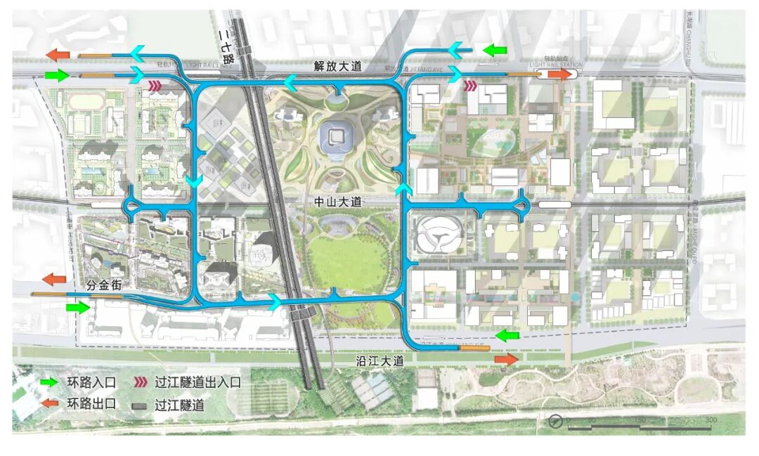 地下环路布局示意图。武汉市规划设计有限公司提供