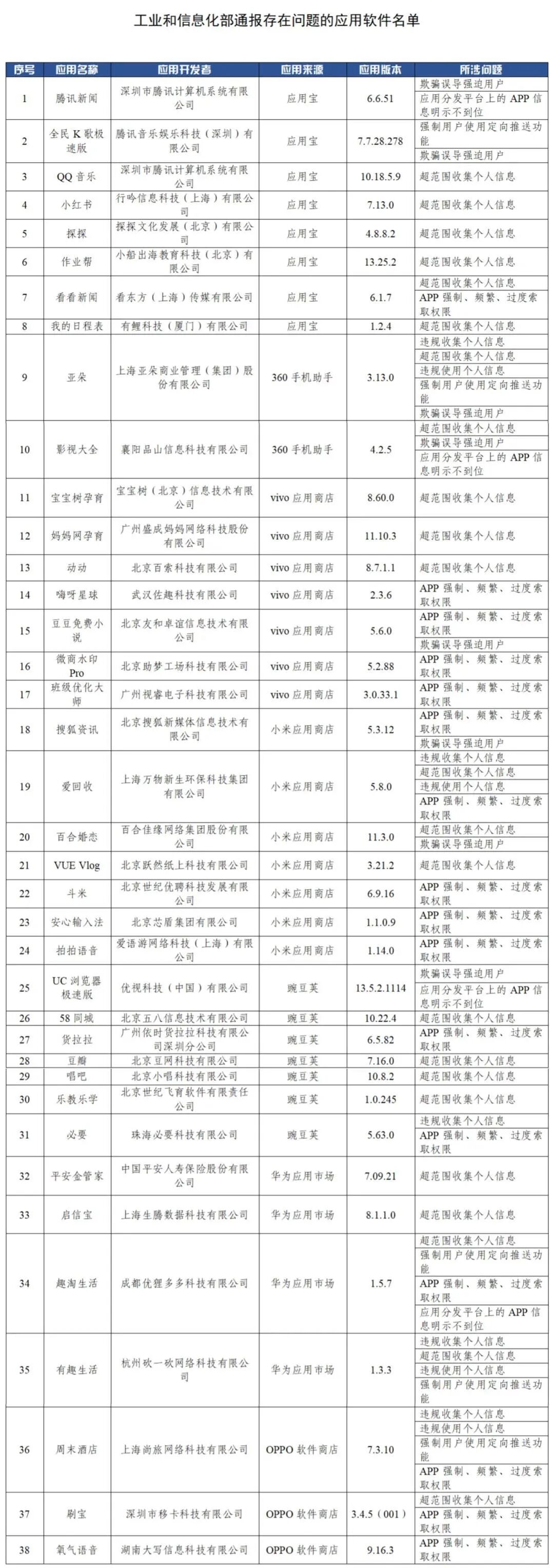 近期,工信部针对用户反映强烈的App超范围、高频次索取权限,非服务场景所必需收集用户个人信息,欺骗误导用户下载等违规行为进行了检查,共发现38款App存在问题。上述App应在11月9日前完成整改,逾期不整改或整改不到位的,工信部将依法依规进行处置并予以行政处罚。