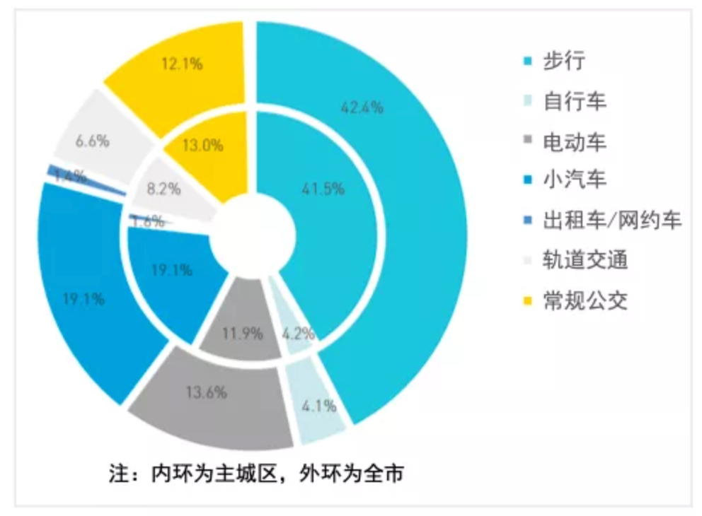 武汉全方式出行结构示意图。武汉市交通发展战略研究院 提供