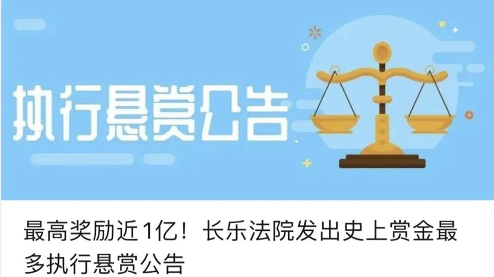 福建省福州市长乐区人民法院日前发布了一则执行悬赏公告,两位被执行人的执行标的达4.88亿元。悬赏公告称,将按执行到位金额的20%予以举报奖励,赏金最高可达0.976亿元,堪称“史上赏金最多”执行悬赏公告。