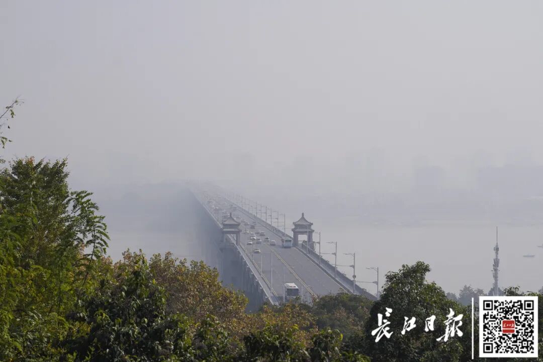 11月18日,长江大桥在雾气的笼罩下若隐若现。记者彭年 摄